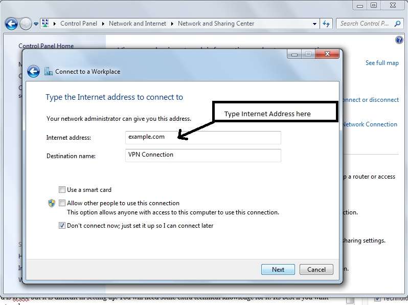 5. Setting up Network details:- When you will select connect via Internet connection It will ask you more details as below