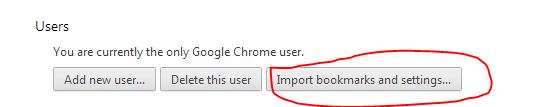 “Customize and control Google chrome” (This icon is just below of window close, minimize and restore buttons on chrome). Now Click on Setting, In setting go to users section and click on “Import bookmarks and setting“.