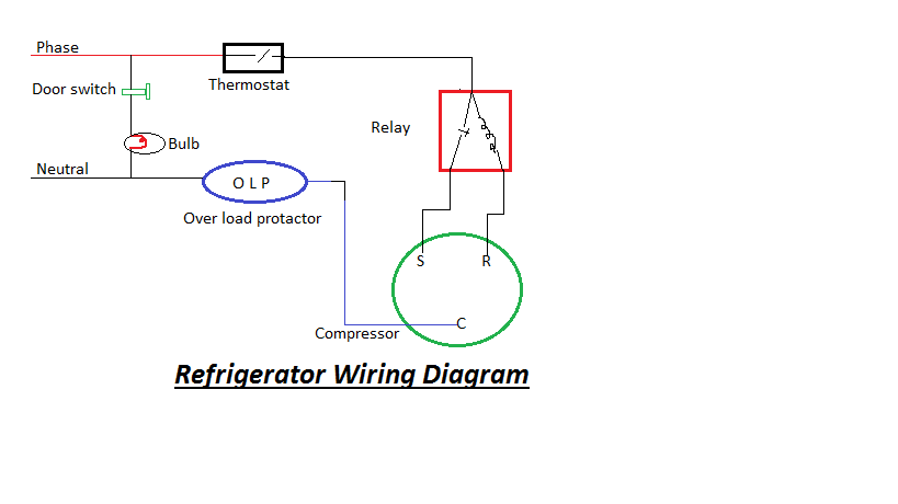 Due to electric fault we need to check it’s wiring. We can find the fault and do rewiring of refrigerator at home. There is a noticeable thing in the refrigerator diagram that bulb supply always give from thermostat inlet supply. Because when the thermostat cut of the supply of compressor than we open the door bulb will give light.